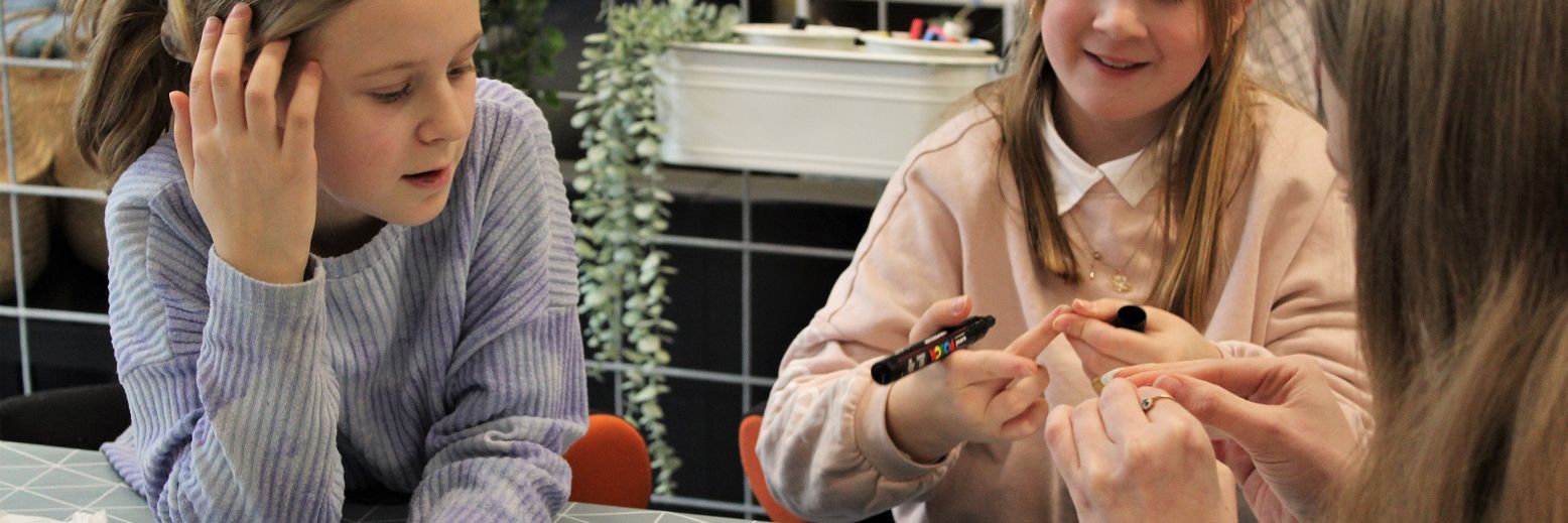 I det kreative værksted kan man lave smykker og tøj, male eller bare hygge. Du kan også lave fødselsgaver og julegaver.